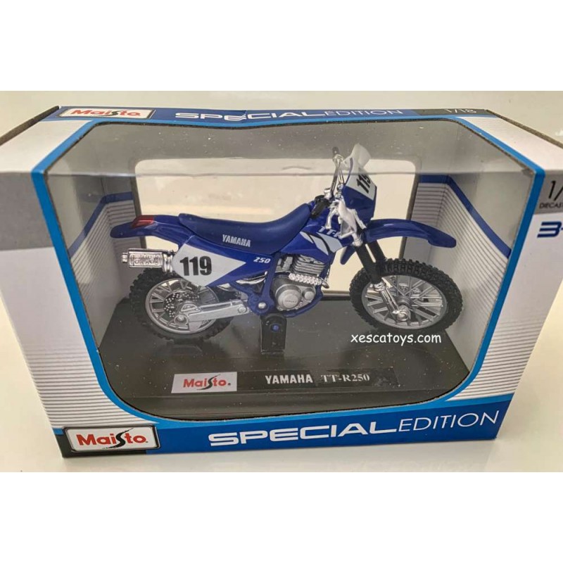 Motocross Motorbike Yamaha TTR 250 Scale 1:18 Maisto Die-Cast Model Special Edition Collection. Approximately 5 cms x 12.5 cms x 7 cms. Metal With Some Plastic Parts